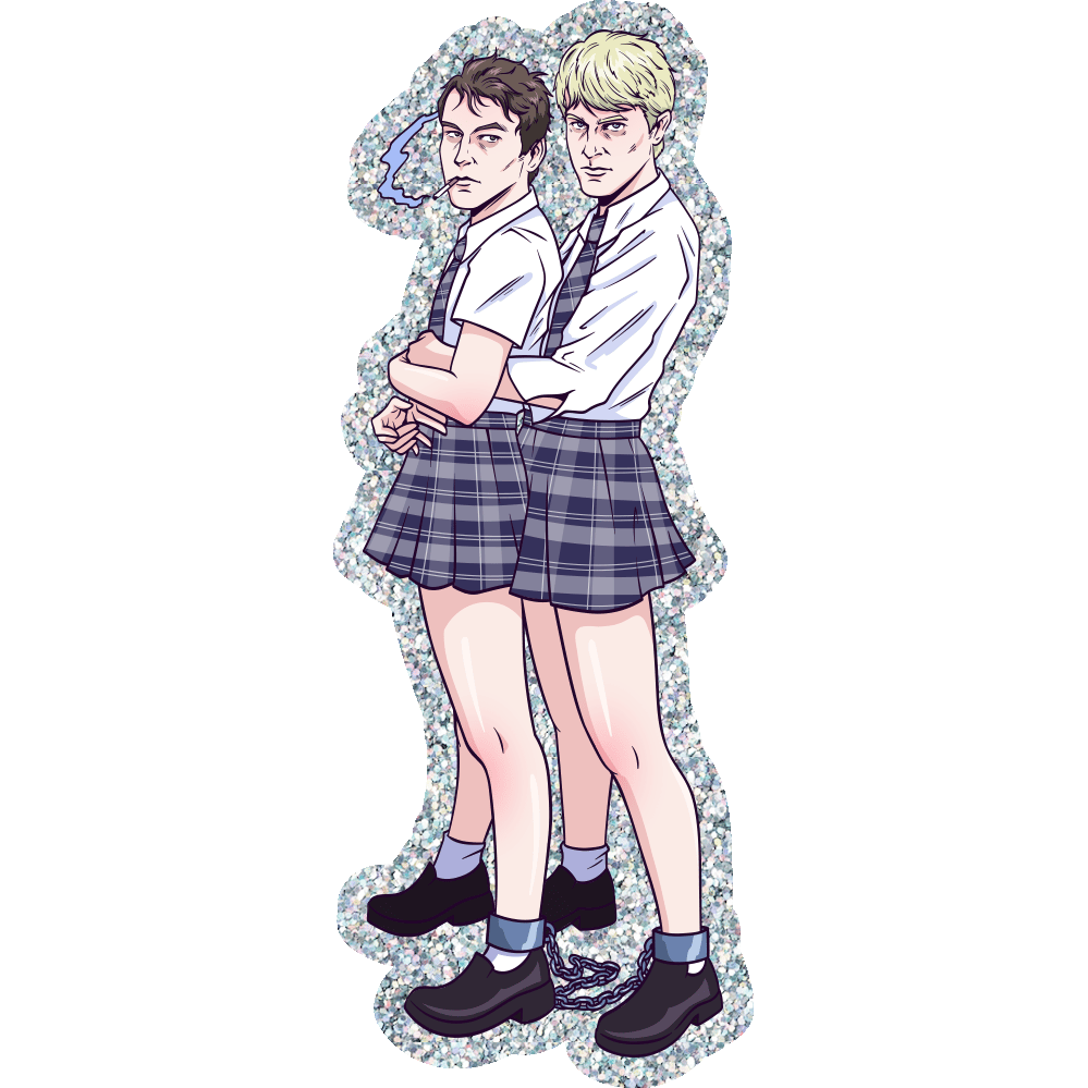 15cm tall sticker with glitter effect.
